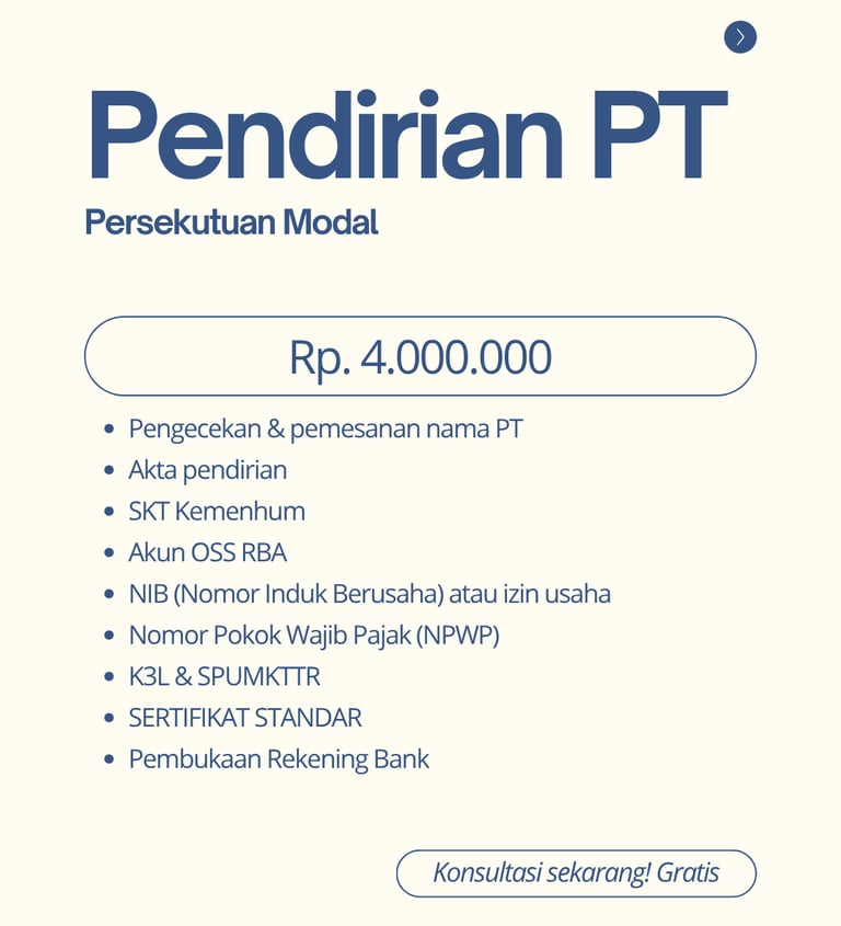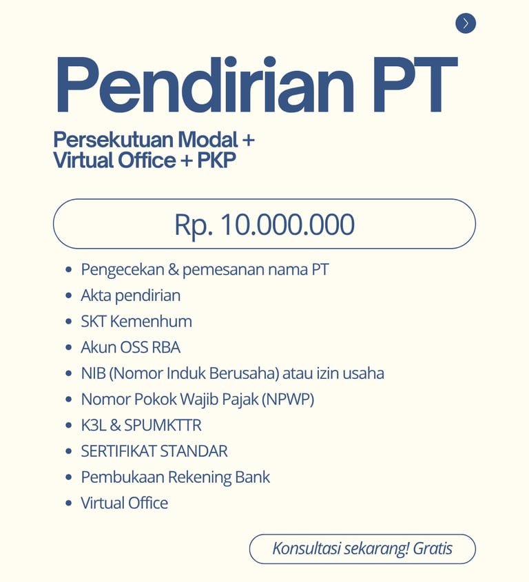 Paket Pendirian PT dari MOIZIN INDONESIA